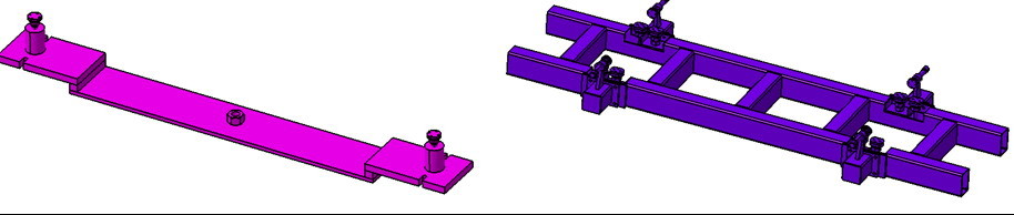 工裝包含兩條橫梁縱向移動調(diào)整C型槽方鋼,通過化學(xué)螺栓固定地面,結(jié)構(gòu)示意如下: