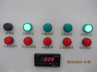 泵站電控箱比較簡單,包括狀態(tài)指示燈、報警燈和蜂鳴器、控制按鈕和急停按鈕等。外形如圖所示